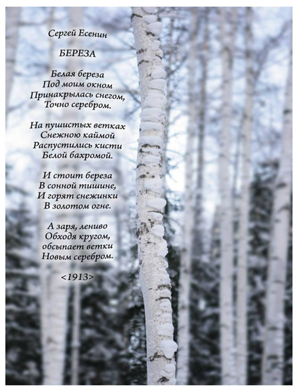 Оборудование: портрет С.Есенина; картины с изображением березы зимой; стихотворение С.Есенина «Береза».